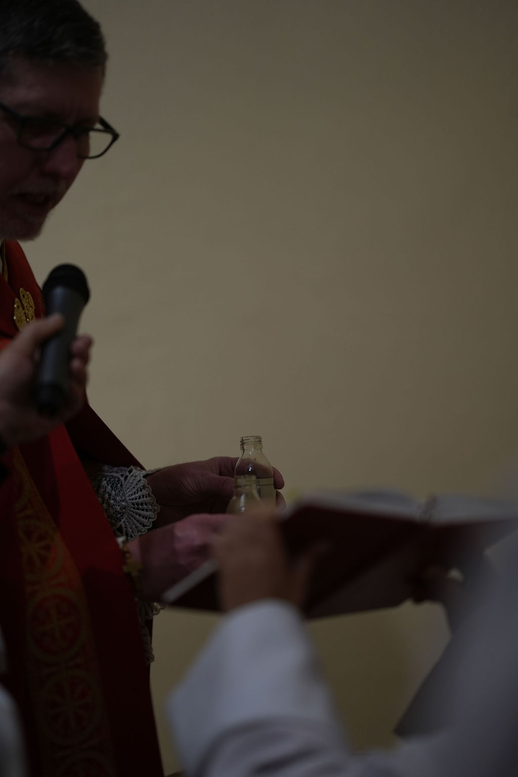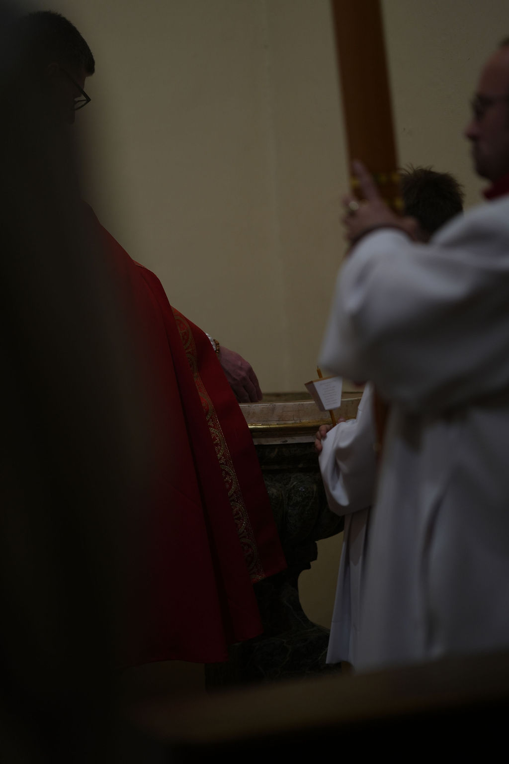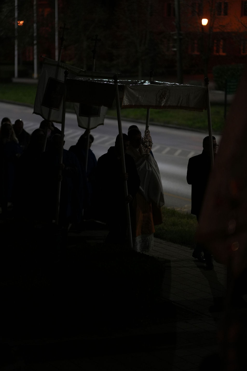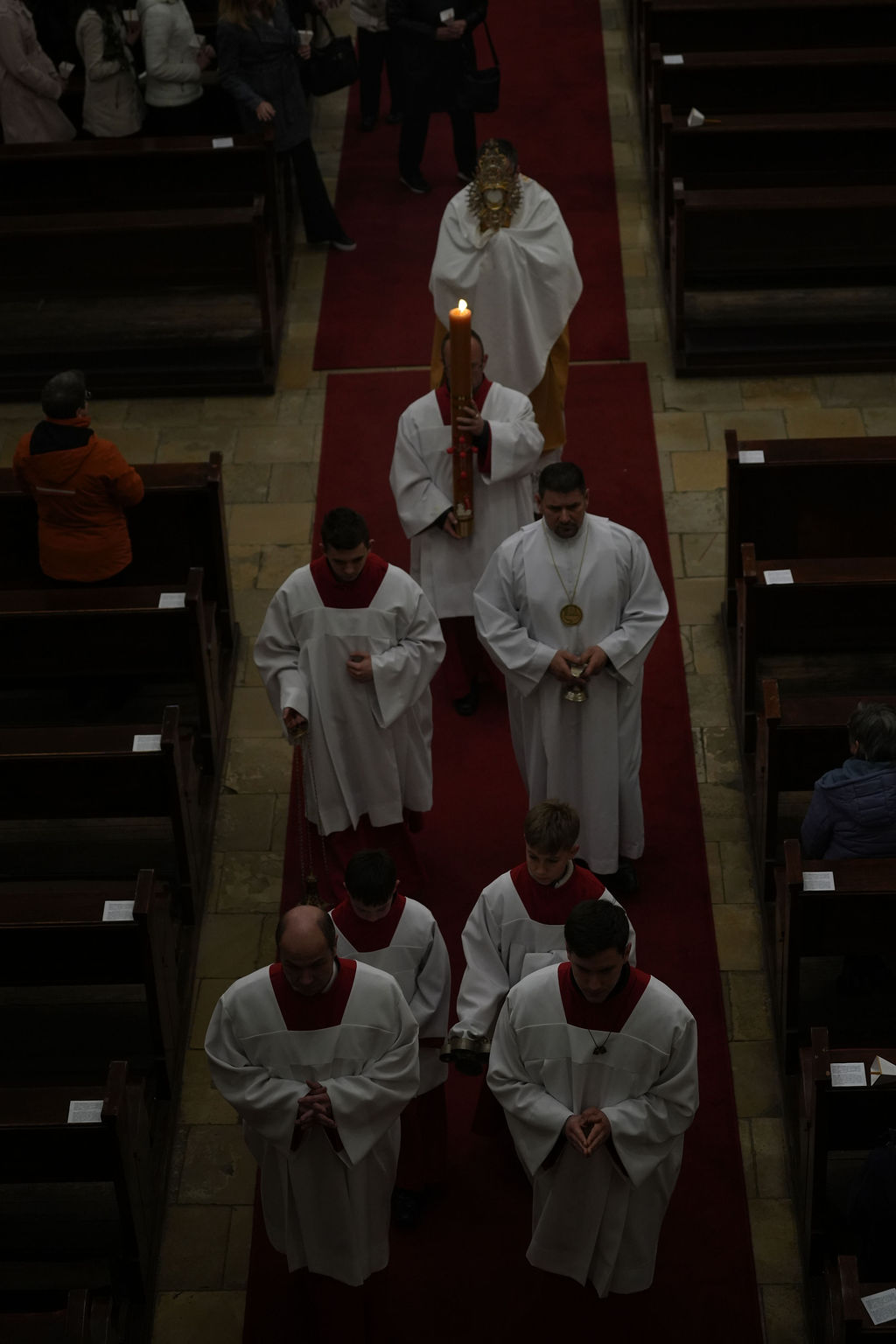 A szertartás a templomon kívül kezdődik az új tűz megszentelésével. A fény Krisztus jelképe, aki legyőzi a bűn és halál sötétségét (Jn 8,12). A megszentelt tűzről gyújtott húsvéti gyertya fénye fokozatosan tölti be a sötét templomot, miközben háromszor hangzik fel: „Krisztus világossága”. Ez a cselekmény nem puszta jelkép, hanem a feltámadás liturgikus megjelenítése, amely a sötétségből a világosságba való átmenetet fejezi ki.
