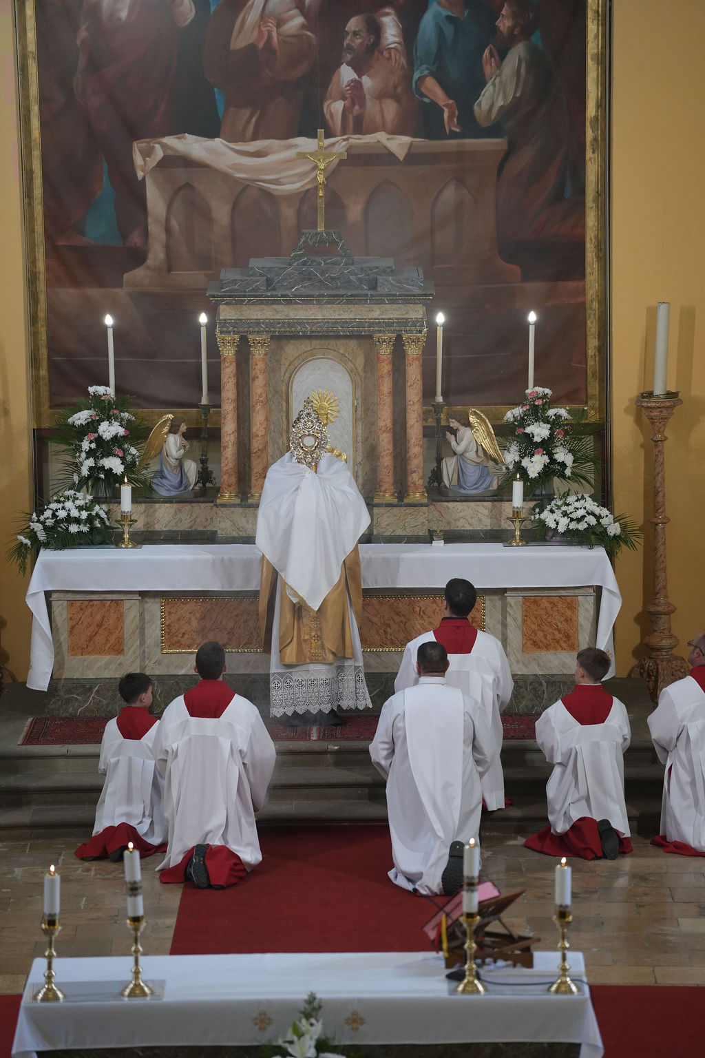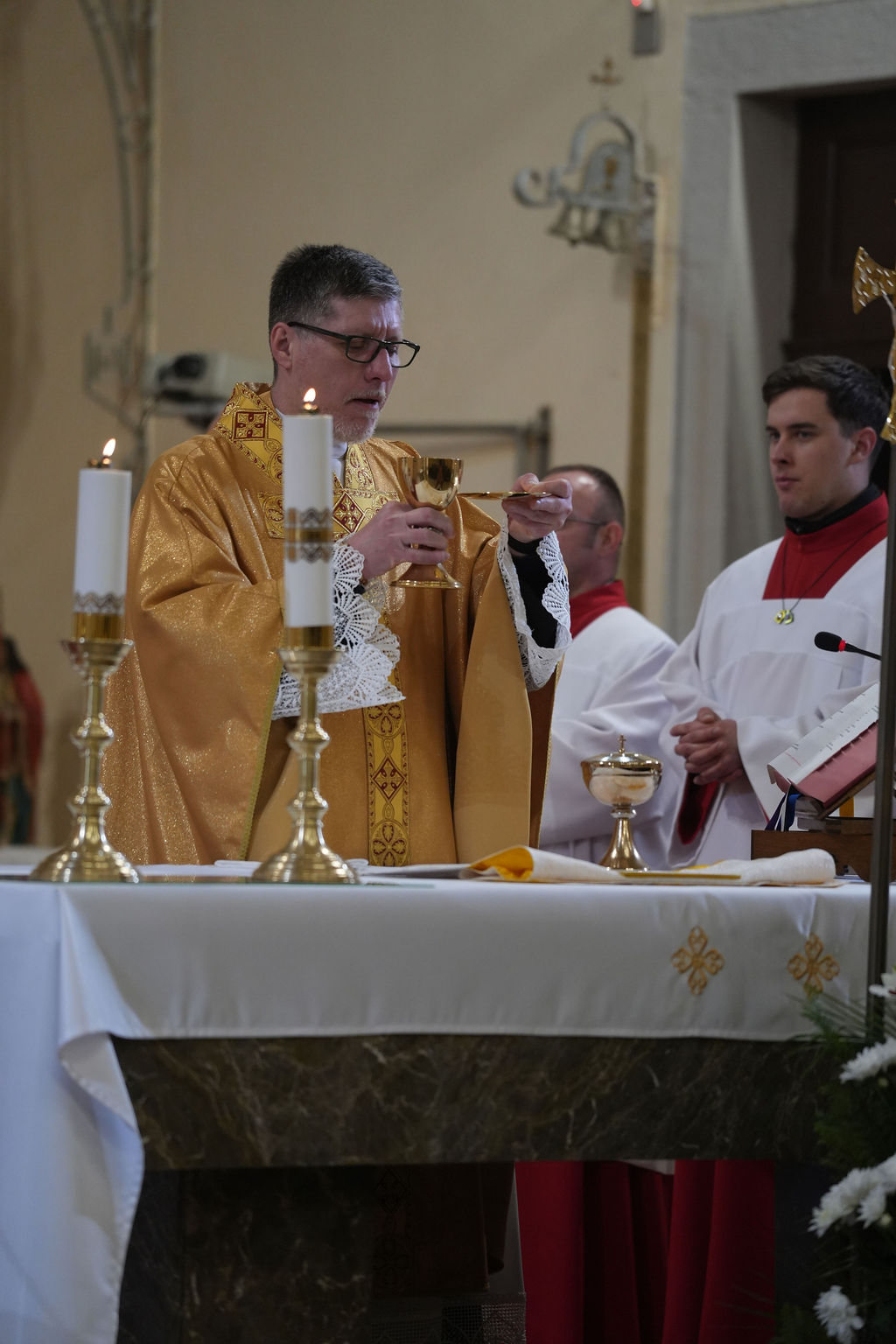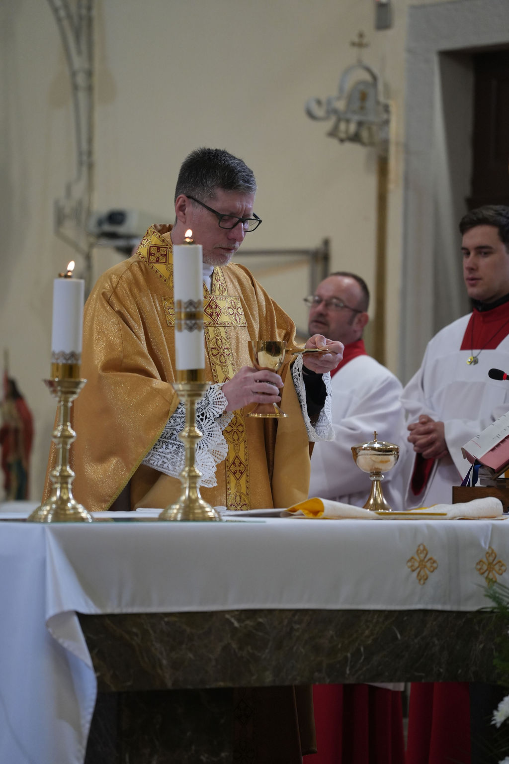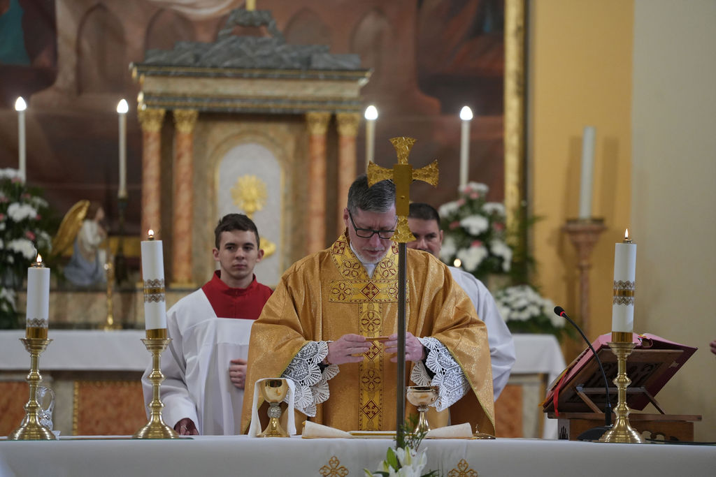 A vigília az Allelujás misében teljesedik ki, amely a feltámadt Krisztus első ünneplése az Eucharisztiában. A Gloria megszólalásával újra felhangzanak a harangok, a templom fénybe borul, és visszatér az Alleluja, amely a húsvéti öröm legősibb kifejezése. Ez a liturgia az Egyház hálaáldozata a megváltásért és az új életért.