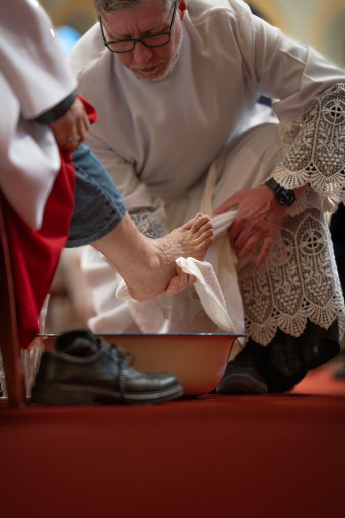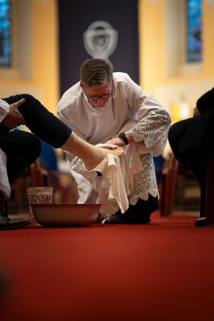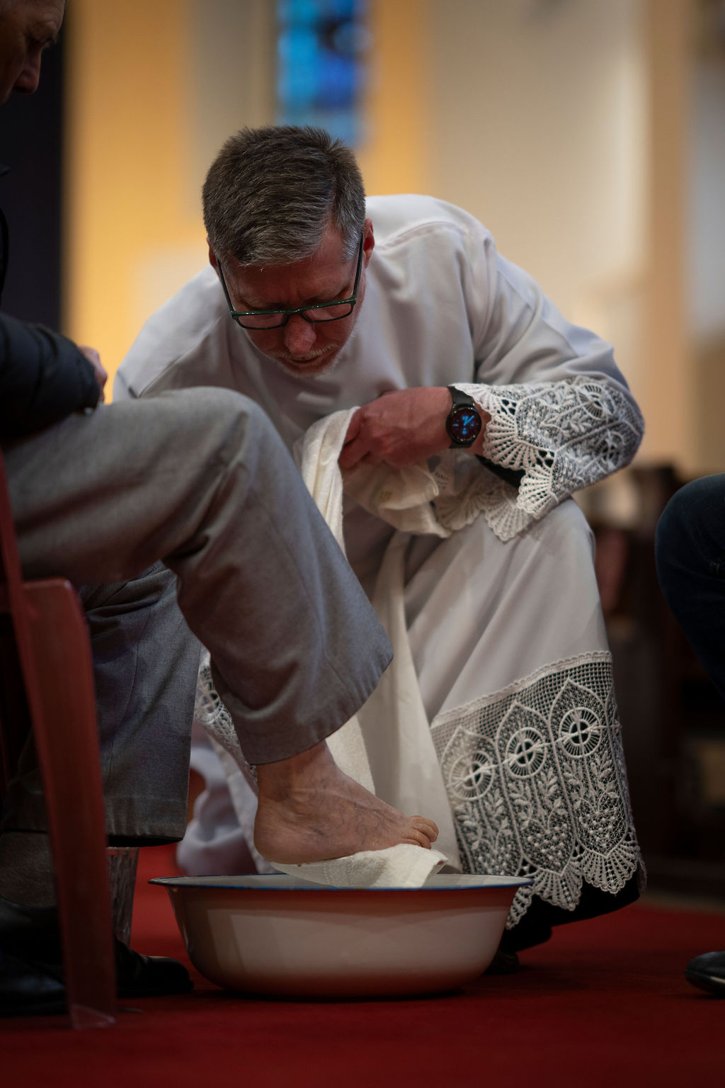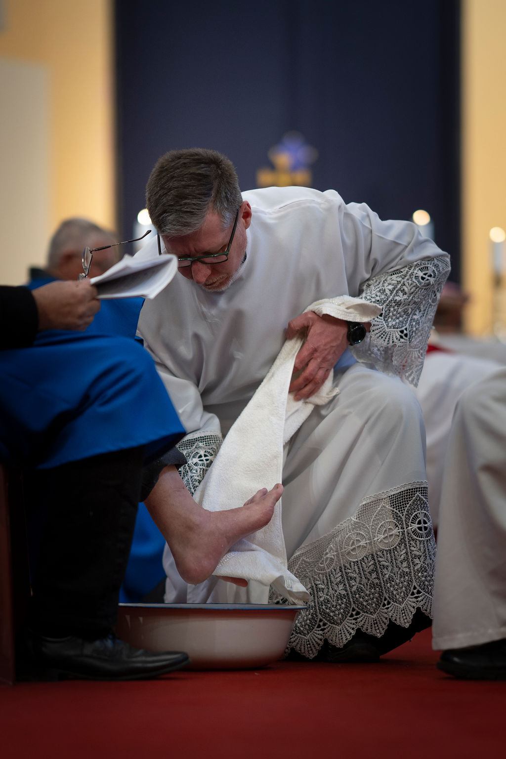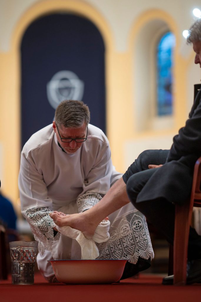 A prédikáció hangsúlyozta: Krisztus nem elszenvedi az eseményeket, hanem szabadon adja önmagát. A lábmosás gesztusa, valamint az Eucharisztia alapítása – „Ez az én testem… ez az én vérem” – az önátadás konkrét, történeti és szentségi formái.