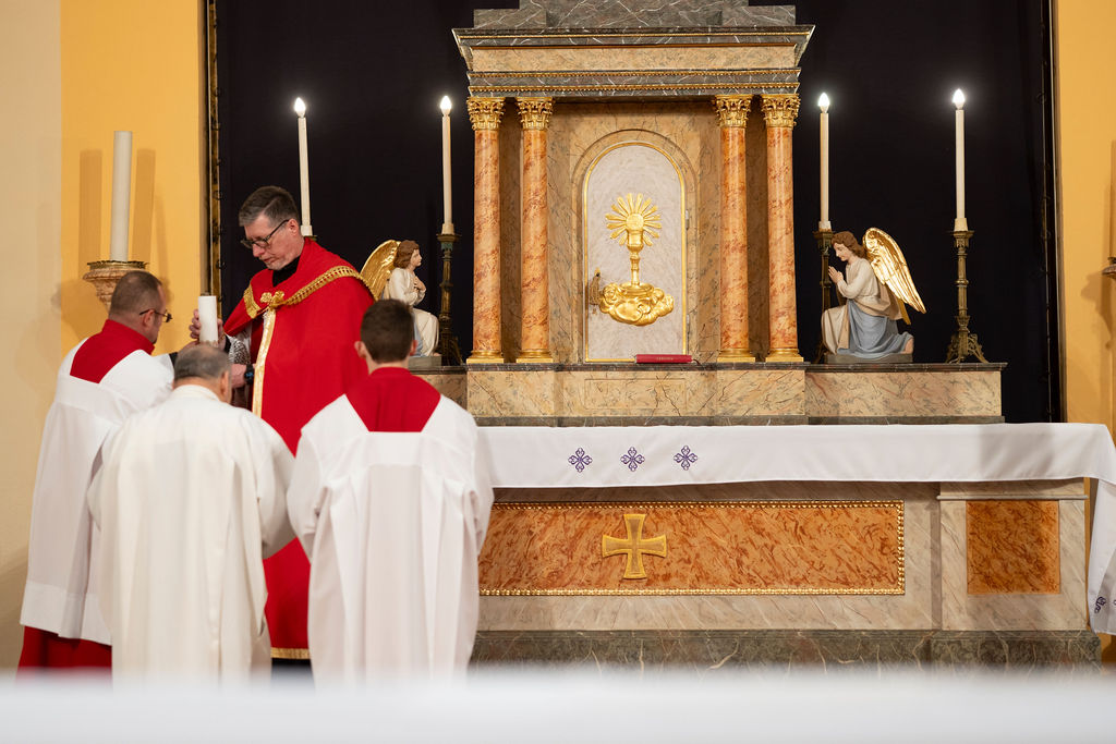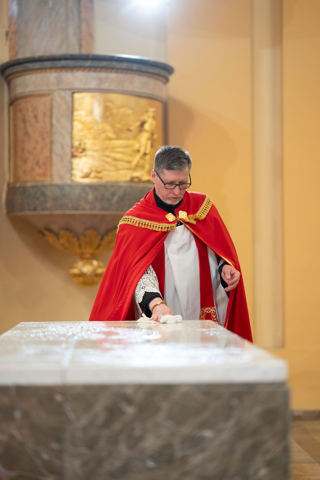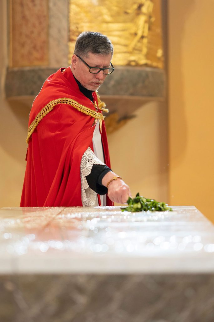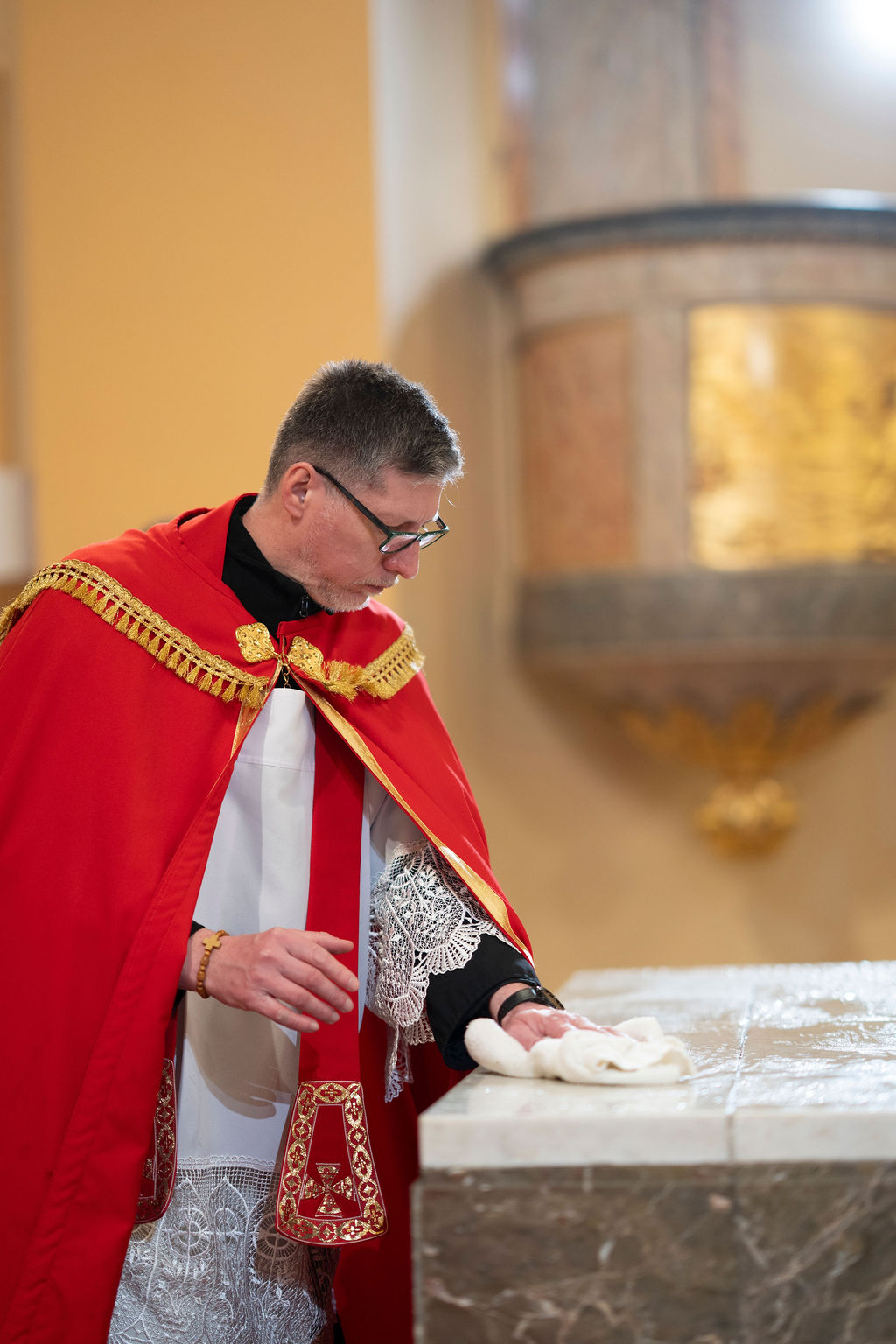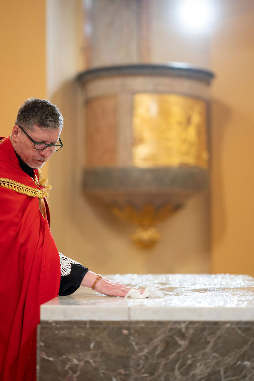 Ezt követte az oltármosás ősi gyakorlata, amely az oltár tiszteletére és szentségére irányította a figyelmet, és a liturgia mélyebb, szemlélődő jellegét erősítette.