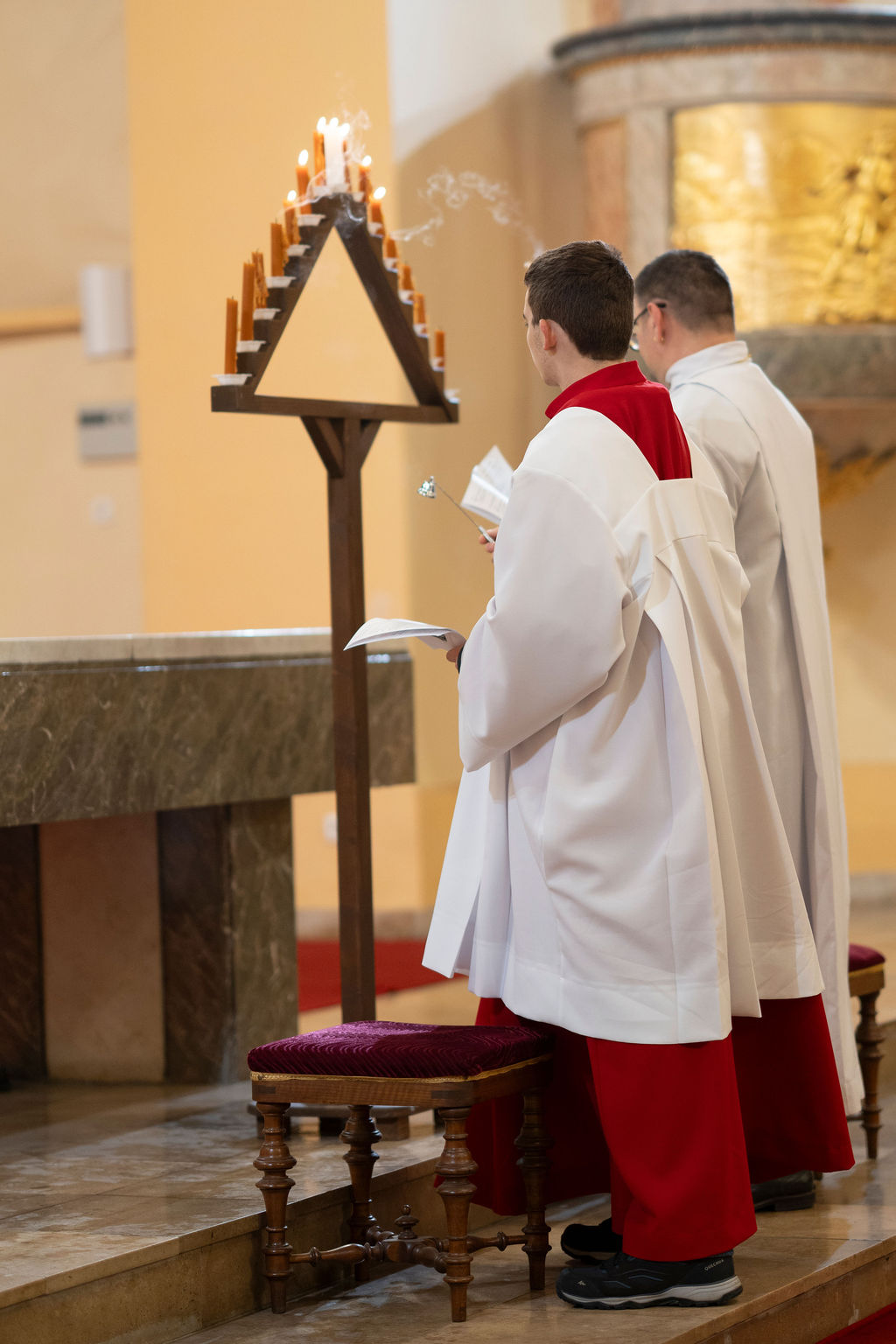 Tegnap este a Polgári templomban ünnepelték Nagycsütörtök szentmiséjét, amellyel a hívek beléptek a húsvéti szent három nap ünnepébe. Az esti liturgia az Utolsó Vacsora emlékezetét idézte fel: az Egyház ezen az estén az Eucharisztia és a papi szolgálat alapítását ünnepli, miközben már Krisztus szenvedésének órájára tekint.
